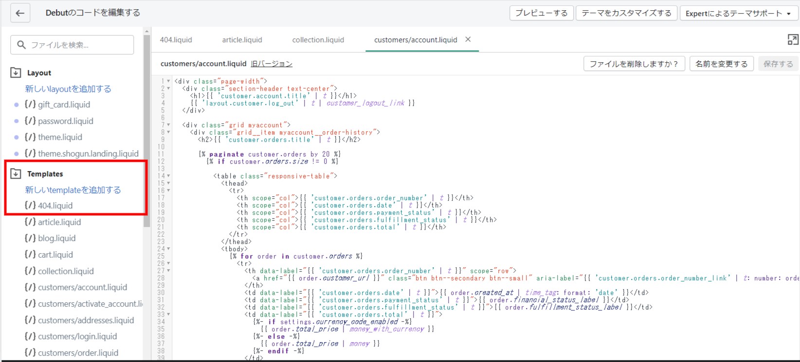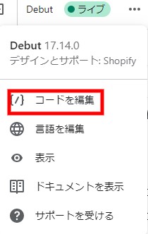 1.テーマのカスタマイズ画面から「コードを編集」を選択肢します。