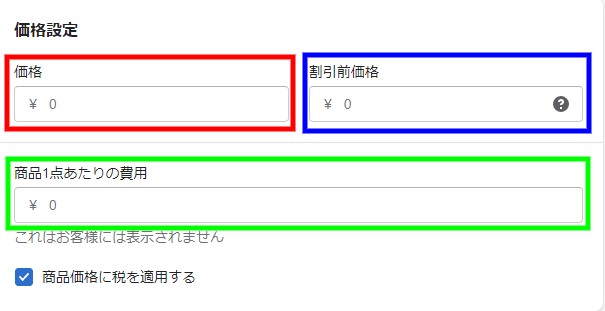 5.赤枠で囲ってある箇所に「商品価格」の入力。