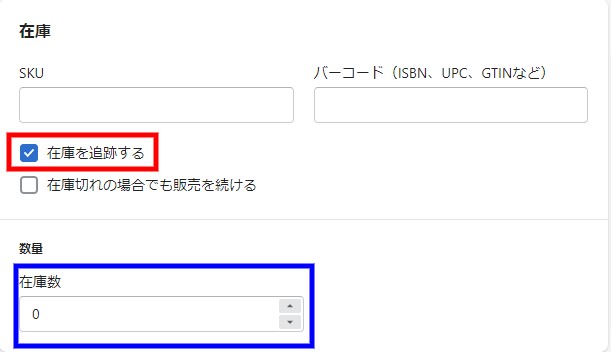 8.赤枠で囲ってある箇所の「在庫を追跡する」をチェック。