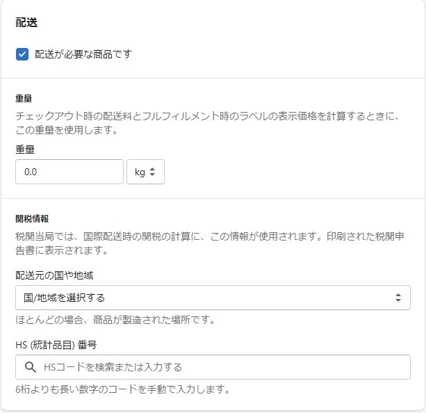 「重量」:重量によって配送方法や料金が変化する場合は入力。