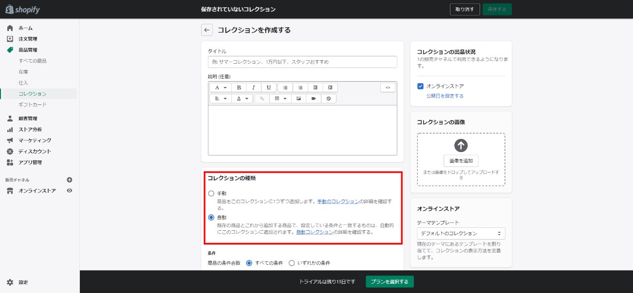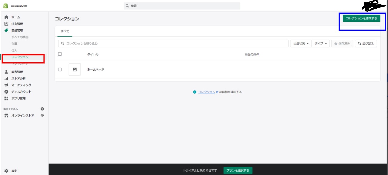 コレクションの作成をすることで、スタッフのおすすめなどと商品を分類することができます。