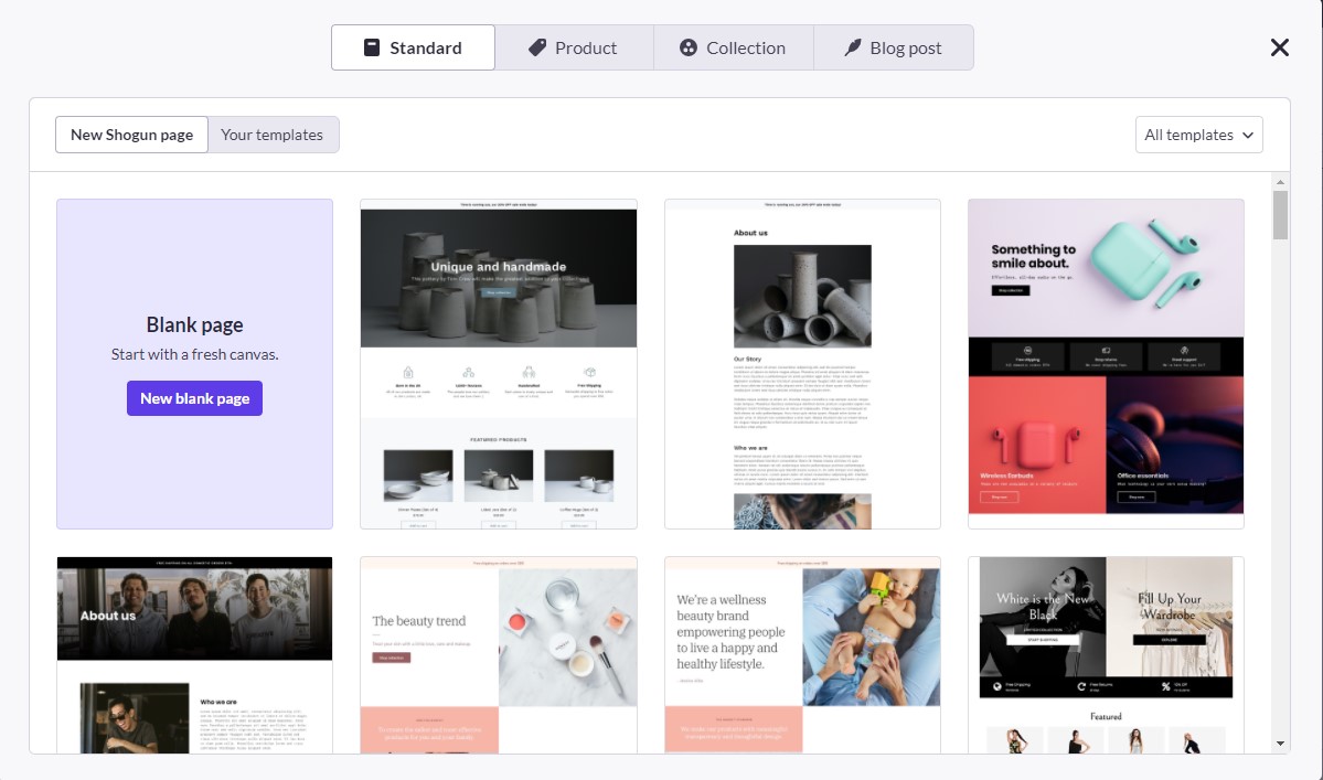 本来ShopifyのカスタマイズをするにはHTML・CSSなどの知識が必要ですが、Shogunはドラッグ&ドロップの簡単な操作でページを作成できます。