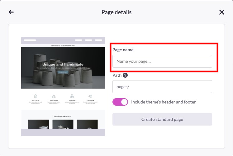 4.赤枠で囲ってある「Page name」にページの名前を入力。