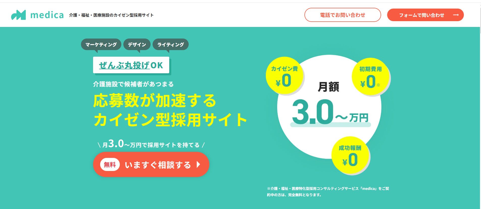 『介護・福祉・医療施設のカイゼン型採用サイト medica』|『Studio』サイト開発事例