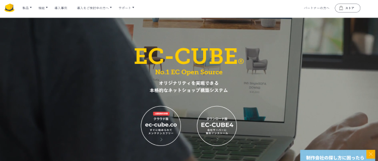 EC-CUBEは国内1位のシェア率を誇るECパッケージです。オープンソースなので、無料で利用できるのが最大の特徴です。サイト構築に深い知識が必要ないため、導入のハードルが低くなっています。