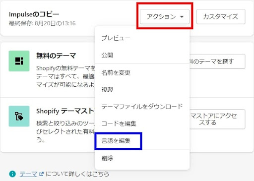 Shopifyでデフォルトの言語として日本語を使用するためには、無料テーマを使用する必要がある点にご注意してください。