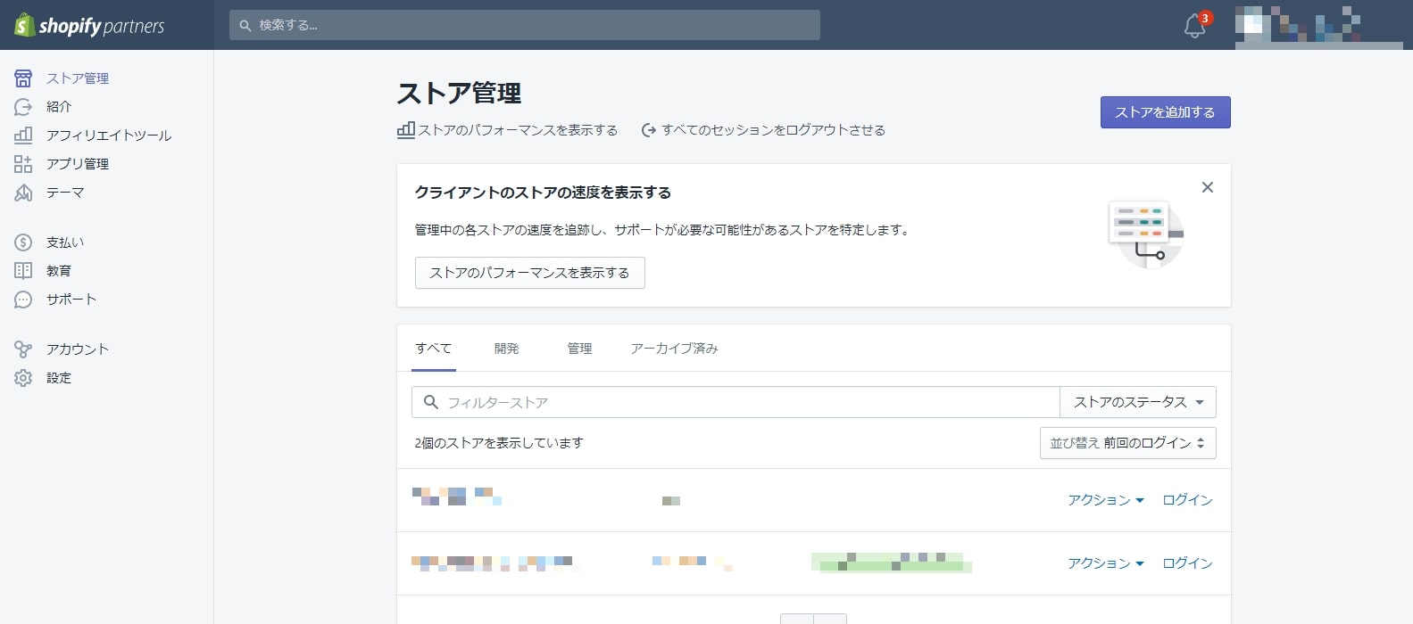 <Shopifyパートナーの管理画面>