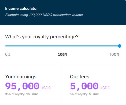 例として、100,000USDCを売り上げた場合は、95,000USDCが自身の収益になり、5,000USDCがThirdwebに支払う料金になります。