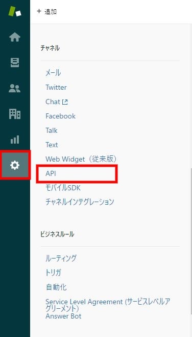 APIは、ダッシュボードの「⚙」から「API」を選択することでしようできます。